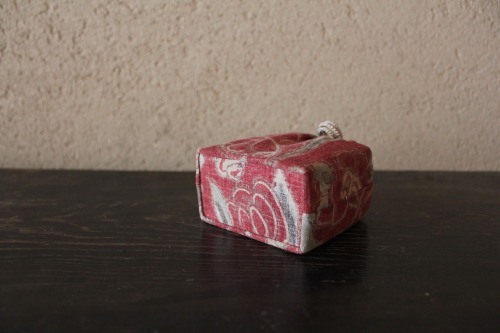 手持ちの古裂の中から探し出した印度更紗は、桐箱がギリギリ取れるだけ残っていましたが、針先ほどの穴もありましたので芯地を貼り仕立てています。手触り柔らかく色もきれいに残っており、やはり印度更紗はいいものです。