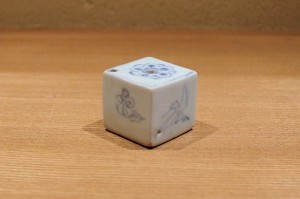 このような小さい水滴は、多分上流階級のご婦人の化粧の水滴だったと思われます。この作品は李朝中期の広州官窯の物で、俗に言う金砂里窯のものです。上面には李王家の紋章とされる梨の花が描かれ、側面は雲鶴文です。