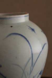 あるご夫妻に、この壺と他数点をお見せしたところ、まだ収集を始められたばかりで価格的なこともあり、後日、他数点の中から一つをお買い上げ頂きました。帰宅され、その購入品を奥様にお見せすると