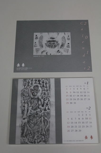 京橋の古美術店、去来さんが毎年送ってくださる卓上カレンダーです。 主人の松沢さんは女性らしい感性とセンスを持ち合わせていて、古美術の魅力を上手に伝えておられ、毎回感心させられます。これはご自身がお好きでないと、出来ない表現だと思います。 暮れになると、沢山のカレンダーが届きますが、使おうと思うものは少ない物で、いつももったいないな~と思いながら処分します。物と言うのは同じく生まれた物でもこのような違いがあるんですね。