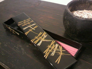 そのお香を入れている丁度良い大きさの蒔絵の箱。