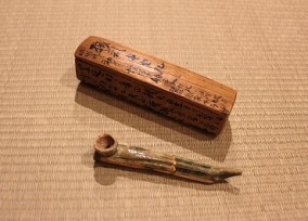 (ご売約済み) 先日、あるお客様からこの織部のキセルを譲り受けました。ご存知のように荒川豊蔵が土を求めて山の中に入った際、偶然に志野や織部の陶片を発掘し、それ以来、志野、織部など桃山時代を代表する陶器が美濃産であると世間に認識されました...