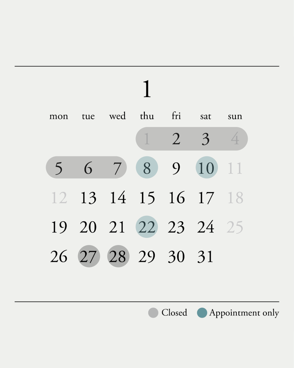 ✳︎Appointment onlyの日は来店予約ページよりご予約ください。