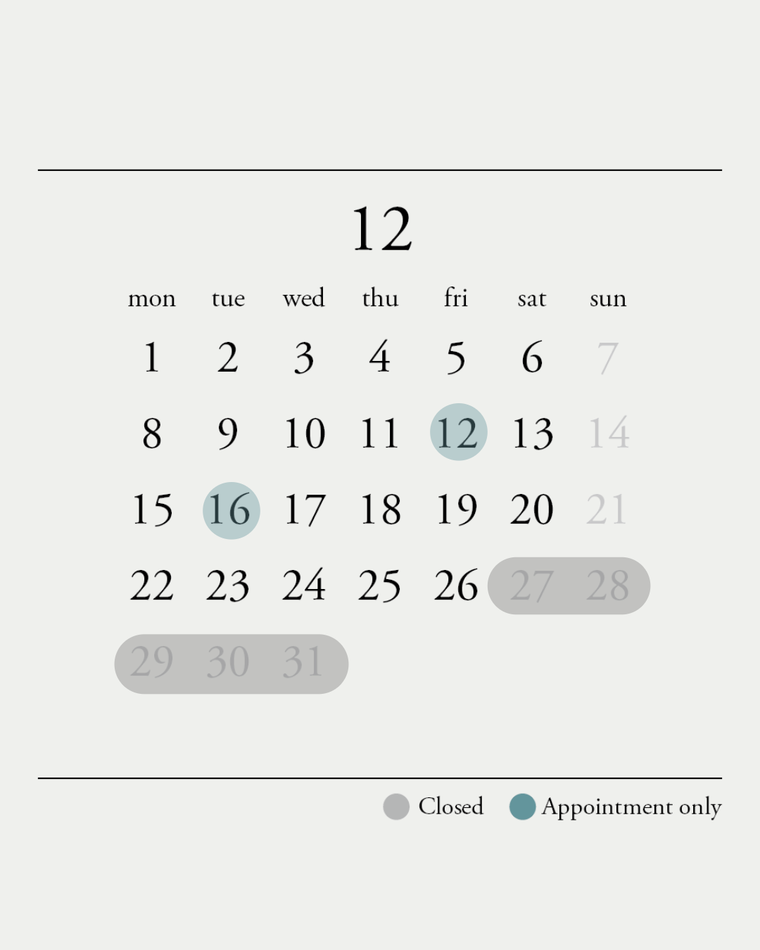 [12月の店舗営業日]